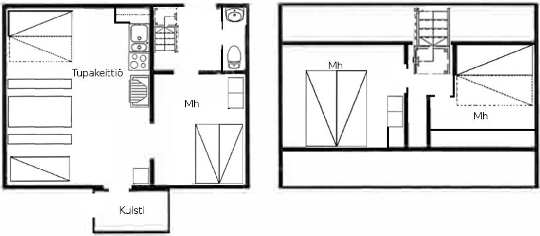 The idyllic Villenmökki was built in 1940 by Viljo "Ville" Eskelinen. At the end of the 1980s, the cottage was thoroughly renovated and two bedrooms were built upstrairs. Since then, Villenmökki has served travelers visiting Koli. The cottage has been renovated and improved over the years, but the original atmosphere has been intentionally preserved. The sauna was completely renovated in spring 2021.