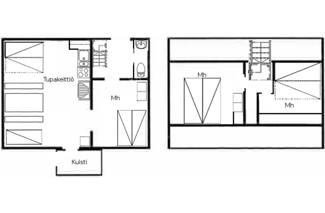 The idyllic Villenmökki was built in 1940 by Viljo "Ville" Eskelinen. At the end of the 1980s, the cottage was thoroughly renovated and two bedrooms were built upstrairs. Since then, Villenmökki has served travelers visiting Koli. The cottage has been renovated and improved over the years, but the original atmosphere has been intentionally preserved. The sauna was completely renovated in spring 2021.