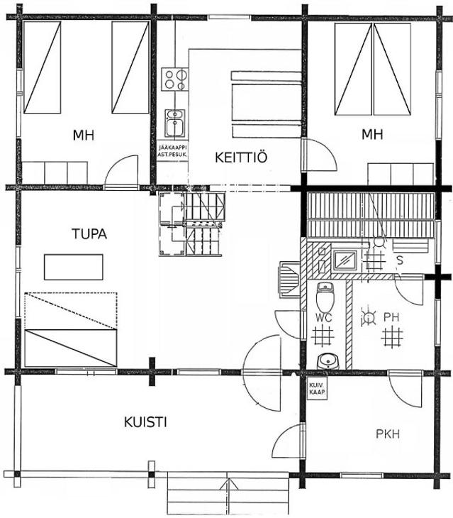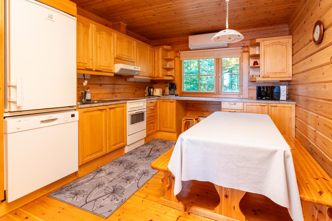 You can stay in Mäntyniemi even with a large group. The air source heat pump not only provides heat but also, if necessary, cooling on hot summer days. After skiing, the clothes dry quickly in the drying cabinet. On the rainy day, watching movies or listening to music is crowned by a home theater. It's nice to grill food or, for example, fry pancakes in the barbecue canopy, regardless of whether it's raining or shining.