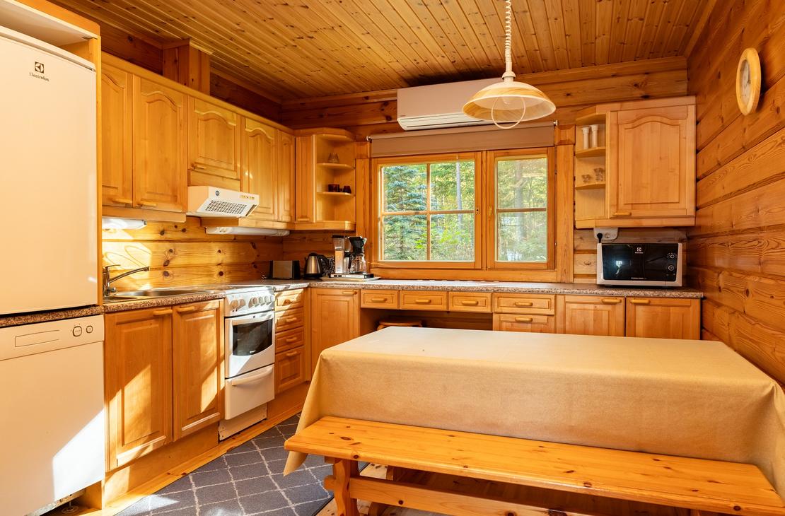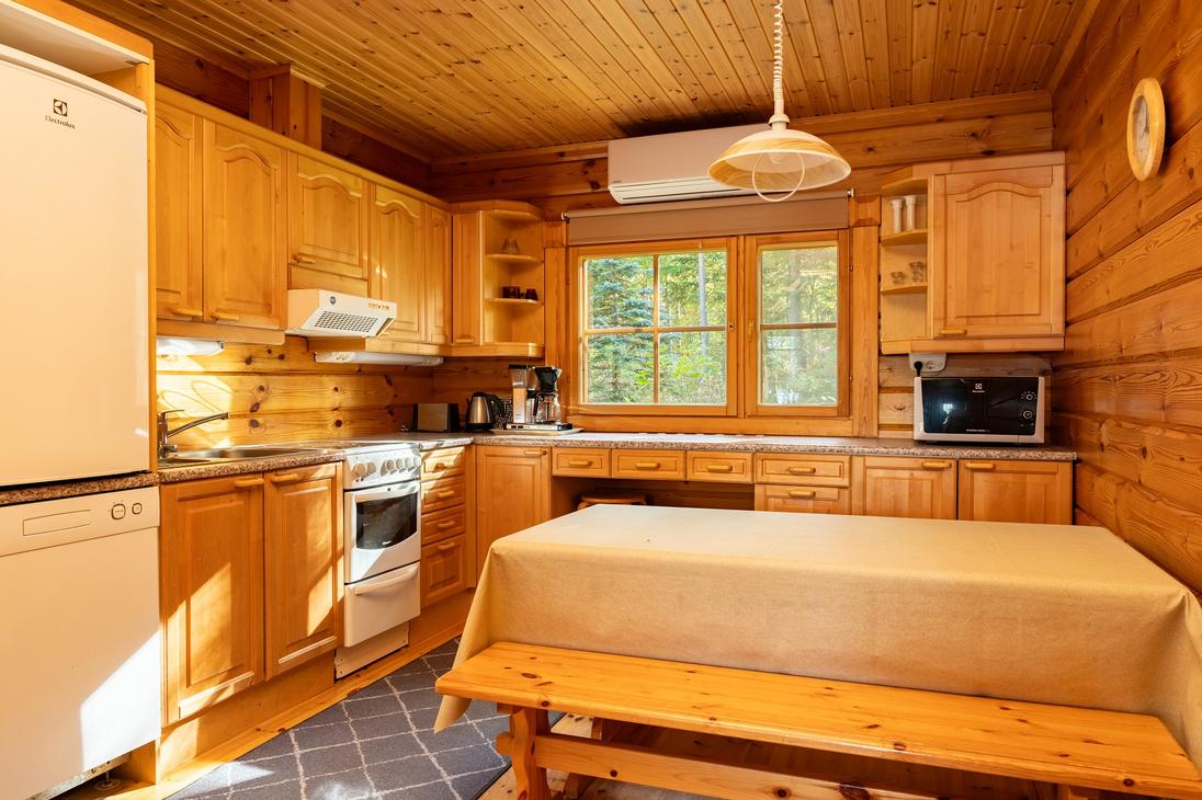 You can stay in Kultaranta, which is in a wonderful location, even with a larger group. After the sauna, admire the sunset from the terrace or balcony. The air source heat pump not only provides heat but also, if necessary, cooling on hot summer days. After skiing, the clothes dry quickly in the drying cabinet. On a rainy day, watching movies or listening to music is cowned by a home theater. It's nice to grill food or, for example, fry pancakes in the barbecue canopy, regardless of whether it's raining or shining.
